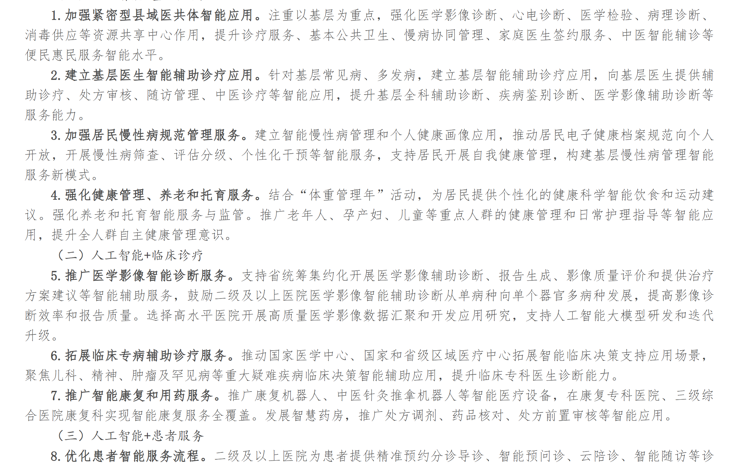 關于促進和規范“人工智能+醫療衛生”應用發展的實施意見